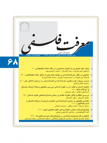 تحلیلی بر نقش معرفتشناسی در تولید علم دینی از منظر علامه طباطبائی سیدمحمود نبویان/ محمد فولادیوندا/ فرشته نورعلیزاده (ص 23)