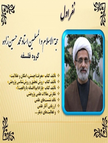 نفر اول: حجتالاسلام والمسلمین استاد محمد حسینزاده یزدی (گروه فلسفه)