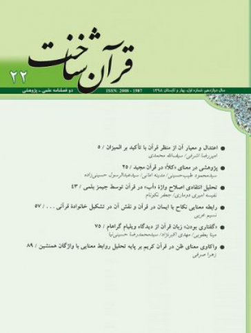 واكاوي معناي ظن در قرآن كريم بر پايه تحليل روابط معنايي با واژگان همنشين