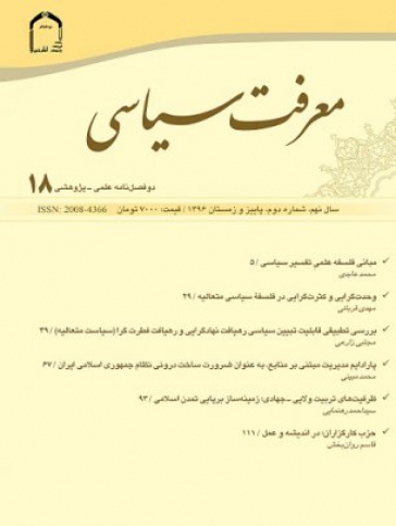 دو فصلنامه علمی ـ پژوهشي «معرفت سياسي» شماره 18 منتشر شد.