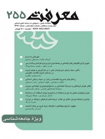 ماهنامه علمی ـ ترویجی «معرفت» شماره 255 (ويژة جامعهشناسي) منتشر شد